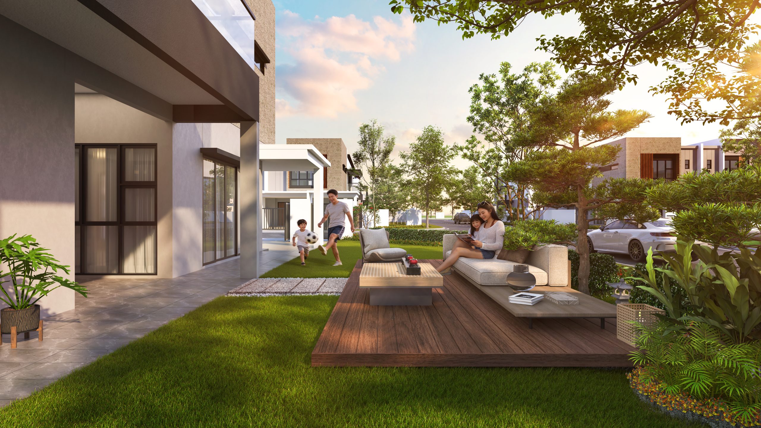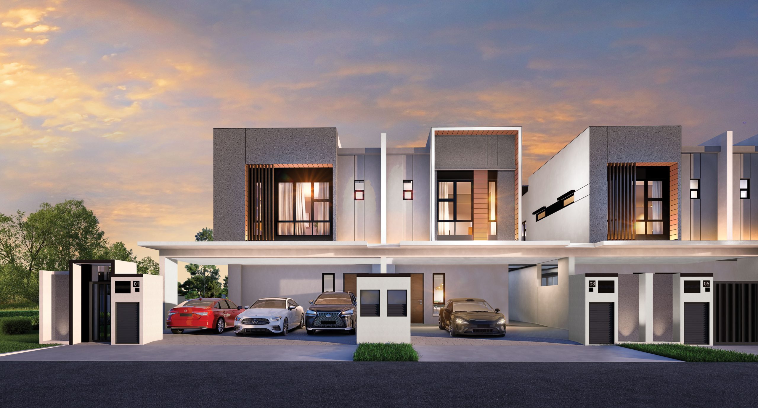 Contemporary homes with lush garden surroundings and amenities.